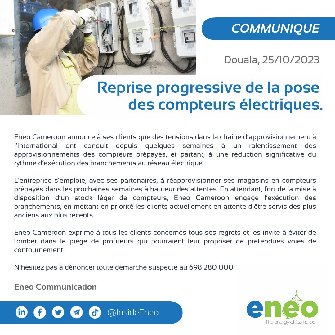 Reprise progressive de la pose des compteurs électriques 25/10/2023 . Téléchargez le communiqué de presse en cliquant ici