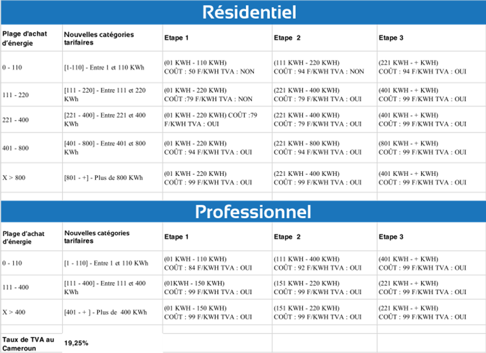 Par ailleurs, cette opération ne change pas le principe qui guide la tarification de l’électricité au Cameroun : consommation modeste, tarifs bas; consommation de « confort », tarifs plus élevés.
