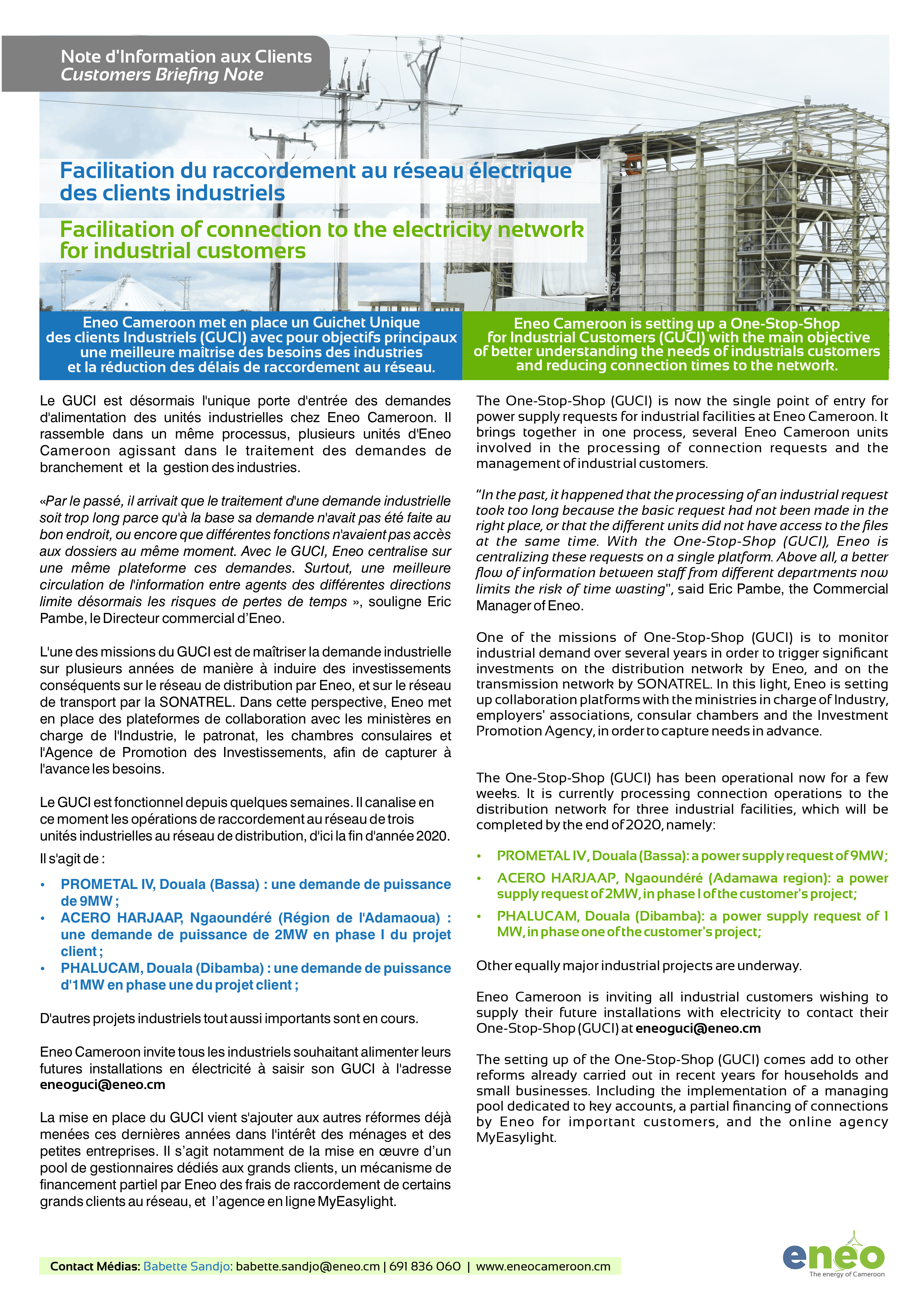 Information note on the One‑Stop‑Shop for Industrial Customers (GUCI) 28/10/2020 Click here to download the note on the One‑Stop‑Shop for Industrial Customers
