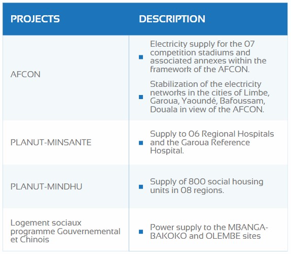 - The continuation of CAN construction sites, especially with a view to connecting the new sports facilities to the network. Eneo has built dedicated supply lines for the stadiums and other sites specifically for the AFCON. These lines are to be used in case of failure of the generators that are the main sources of power. Power lines for other venues have been built.