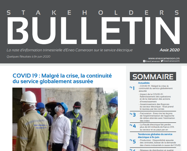 Eneo Cameroon quaterly briefing note on electricity service is here. Some Results as at end of June 2020.