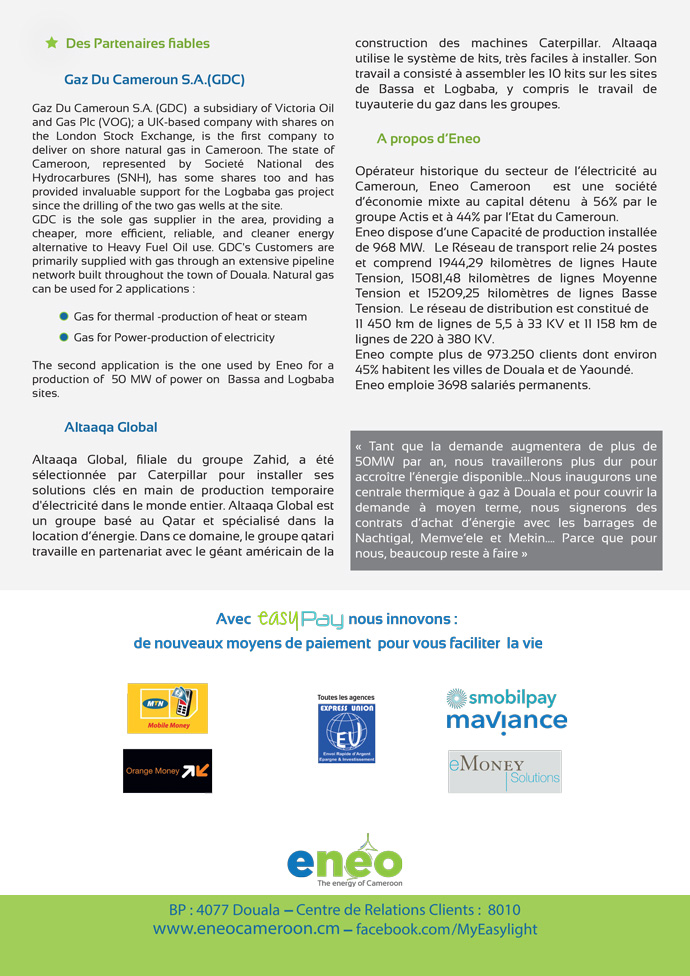Centrale de Bassa/Logbaba au gaz naturel du Cameroun +50 MW