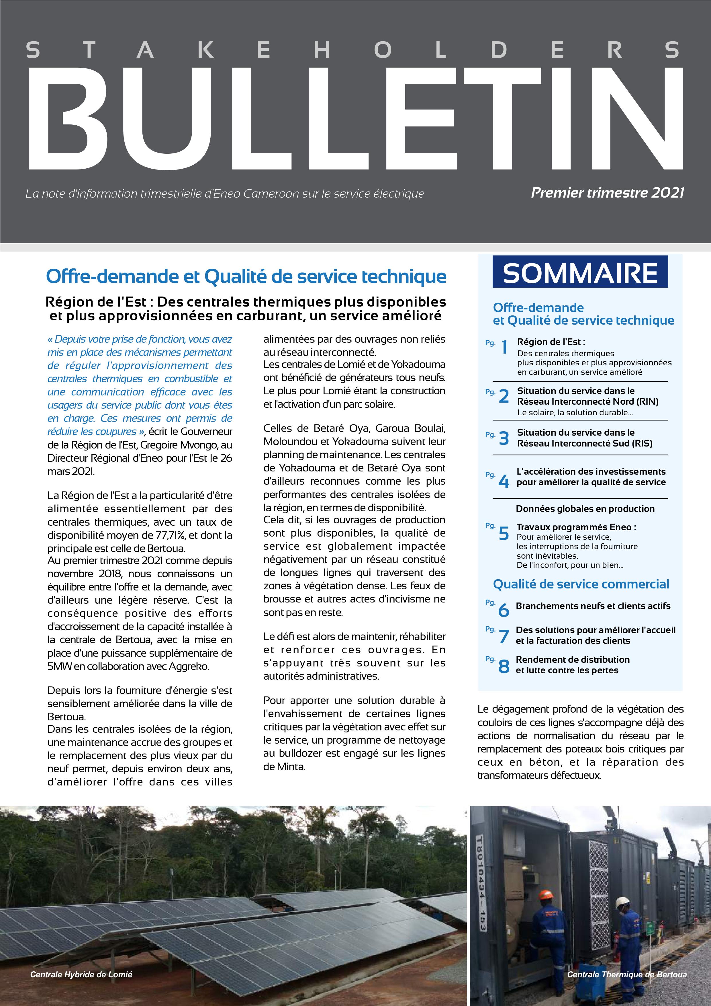 La note d'information trimestrielle d'Eneo Cameroon sur le service électrique est disponible.